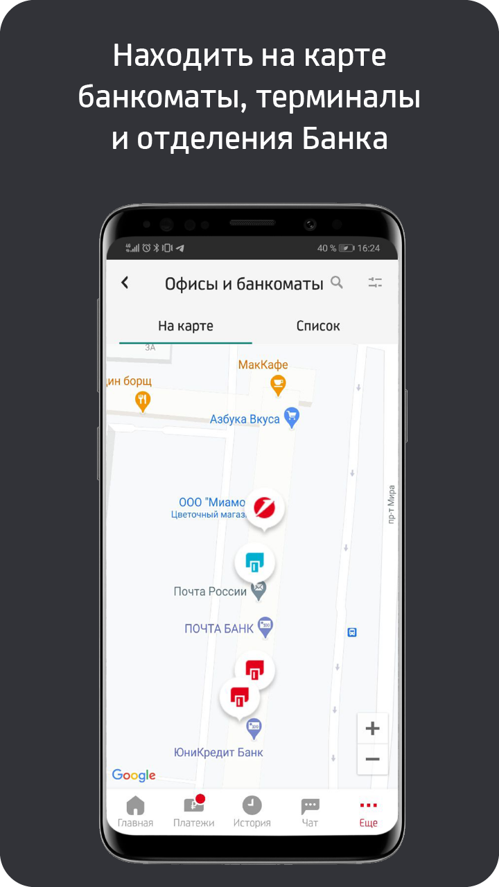 - ✅ 🗺️ Карта отделений — поиск банкоматов и офисов банка